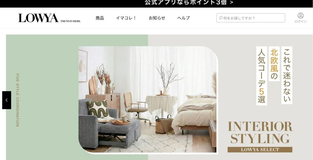 LOWYAはネット中心のインテリアブランドで、トレンド感のあるデザインが特徴です。価格も比較的リーズナブルで若年層に人気です。