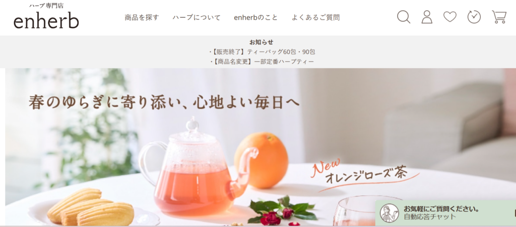 enherbは、体調や悩みに合わせたブレンドハーブティーを提供する専門ブランドです。特に「体質改善」を目的とした設計が特徴で、冷え・ストレス・疲労など現代人が抱える悩みに寄り添った商品ラインナップが豊富に揃っています。