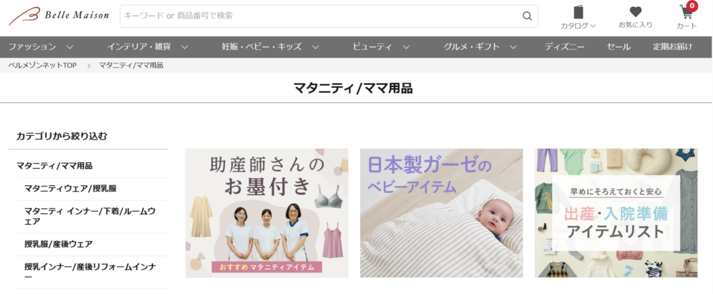 ベルメゾンは、実用性とコストパフォーマンスに優れたマタニティ・授乳服を展開する大手通販ブランドです。シンプルで使いやすいデザインが多く、日常使いに最適なアイテムが揃っています。