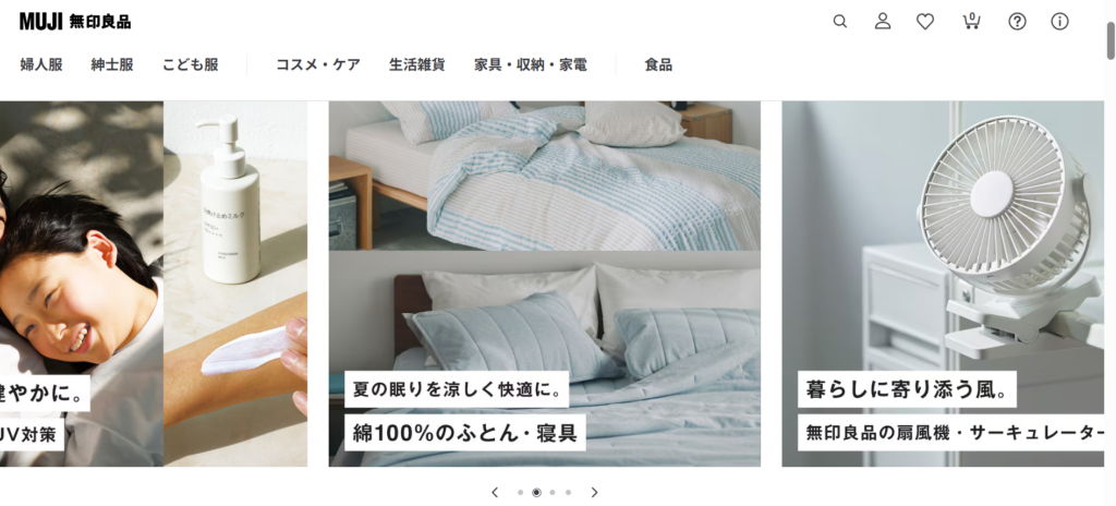 無印良品は「シンプルで無駄のないデザイン」を徹底した日本ブランドで、衣料品においてもその思想が色濃く反映されています。素材にはコットンやリネンなど自然由来のものを多く使用し、肌触りや着心地の良さに定評があります。