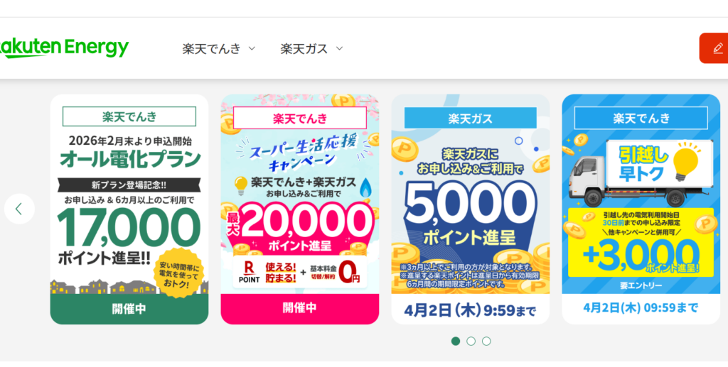 | 3位 | 楽天でんき | ポイント還元 | 楽天ポイント | あり |