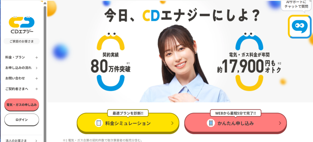 | 4位 | CDエナジー | 安定料金 | 大手運営 | あり |