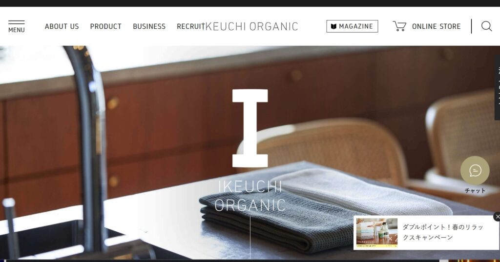 IKEUCHI ORGANICはオーガニックコットンを使用した高品質タオルブランドです。環境に配慮した製品づくりが特徴です。