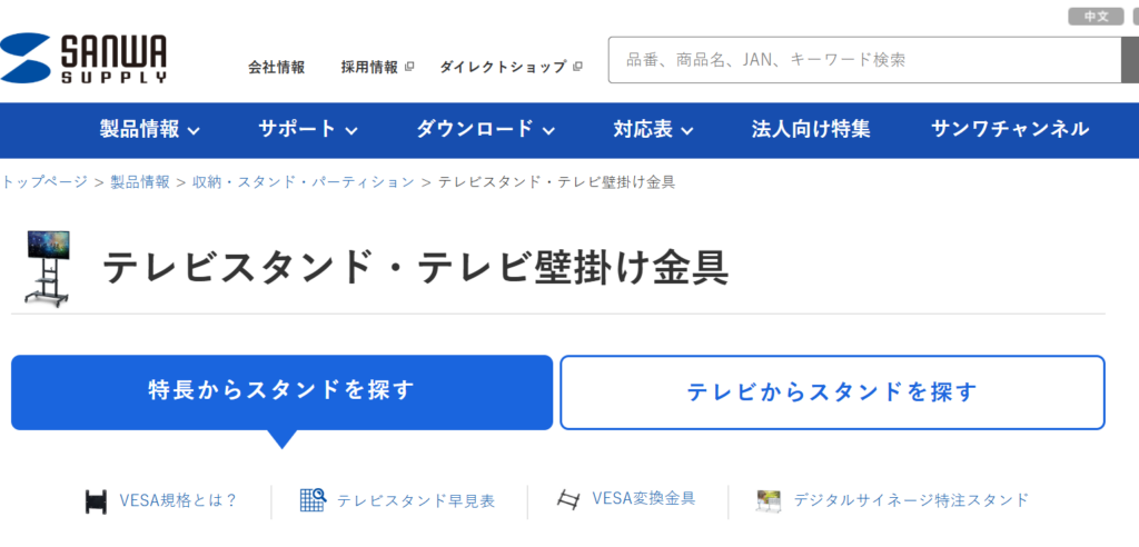 まず重要なのが対応インチサイズです。65インチ以上の大型テレビの場合、スタンドが対応していないと安全に設置できません。必ず対応サイズを確認しましょう。