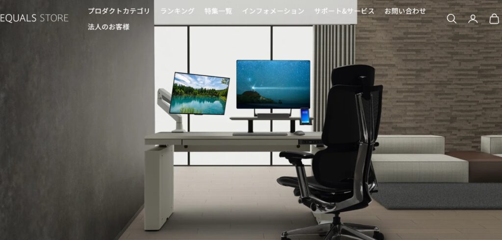 EQUALSのWALLシリーズは、壁掛けテレビのような美しい設置を実現する日本発のテレビスタンドブランドです。大型テレビに対応した設計で、65インチ以上のテレビでも安定して設置できる高い安全性が評価されています。